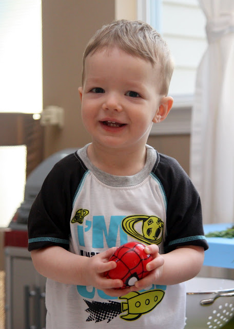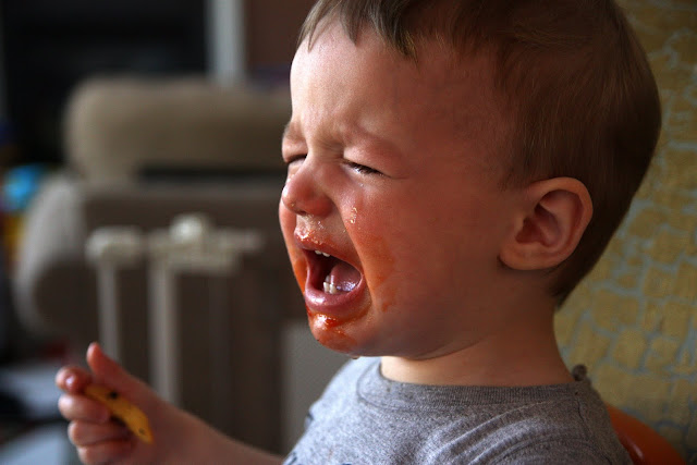 Still Laughing... I can't help but crack up every.single.time I see this shot. And you know why he was crying? Because I tried to wipe the sauce off of his face and he wanted me to "leave it there." Silly boy.
